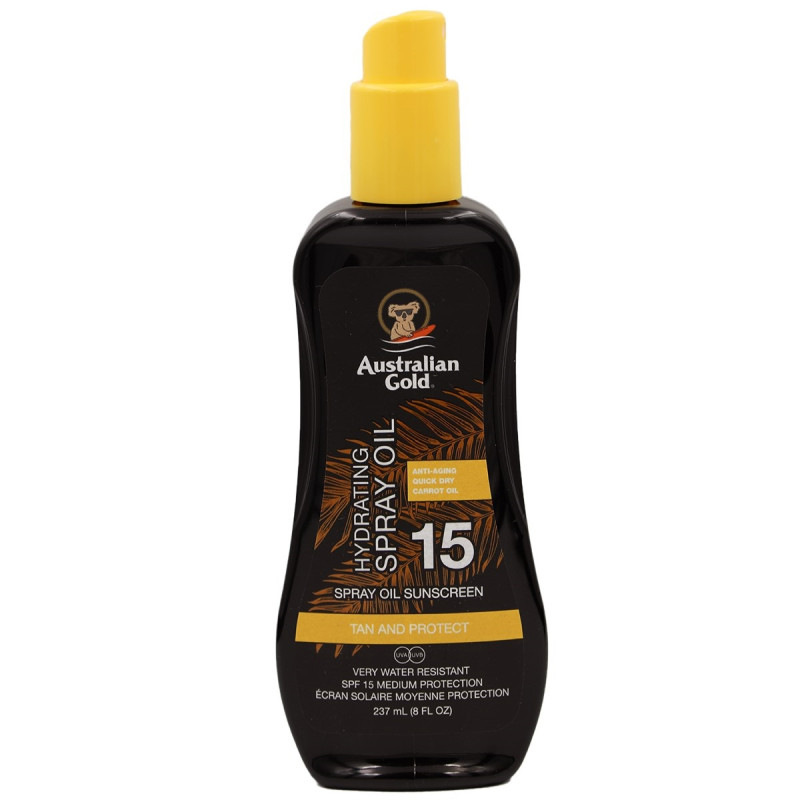 Chráňte svoju pokožku s Australian Gold SPF 15 Spray Oil – luxusným opaľovacím olejom, ktorý sa vďaka praktickému spreju ľahko a rovnomerne nanáša. Zloženie poskytuje optimálnu ochranu pred UVA a UVB žiarením, zatiaľ čo mrkvový olej podporuje rýchle a hlboké opálenie.